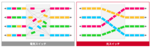 光スイッチは電気スイッチの一部を代替することで、消費電力を効率化できる新しいスイッチ技術です。